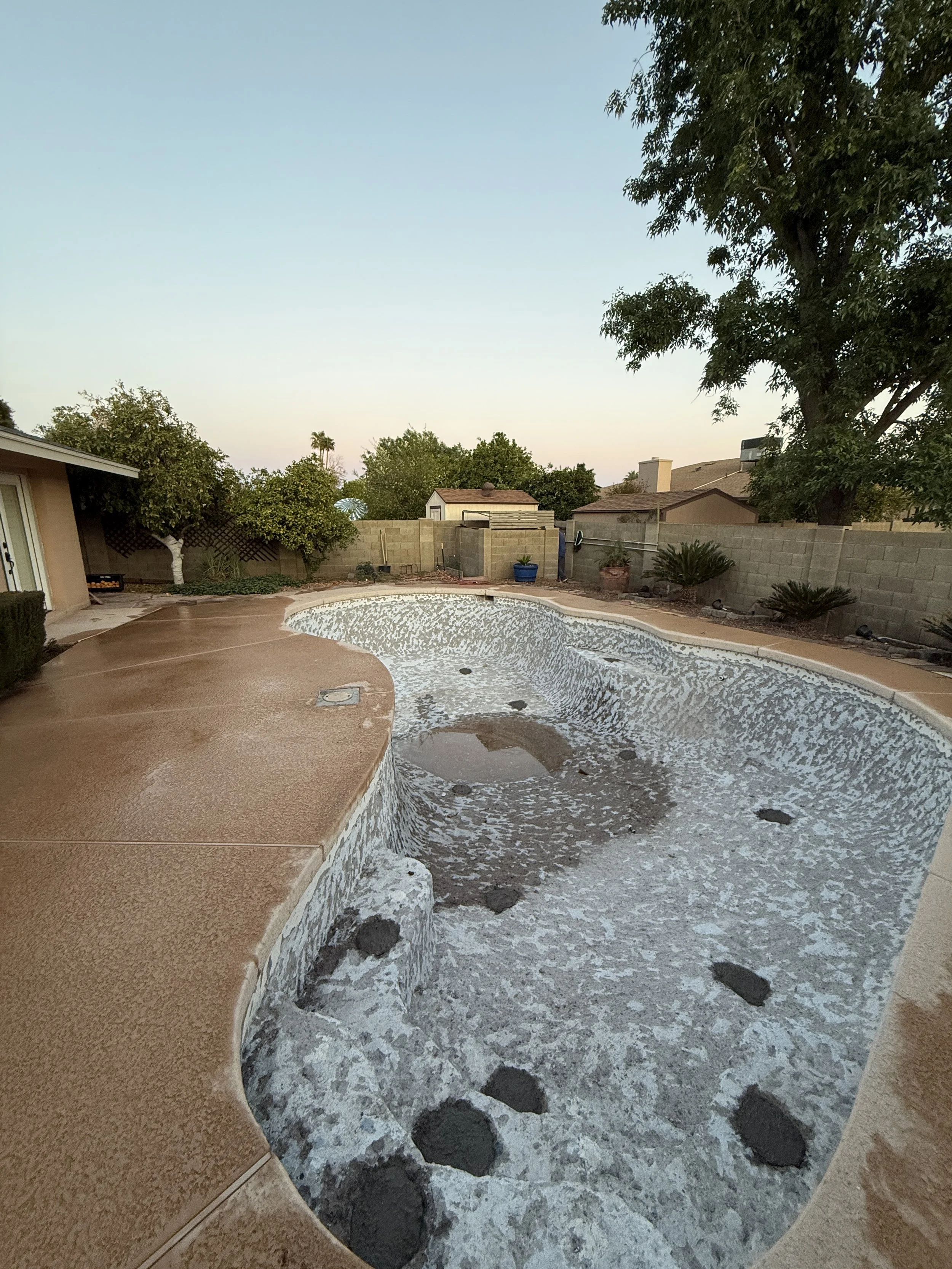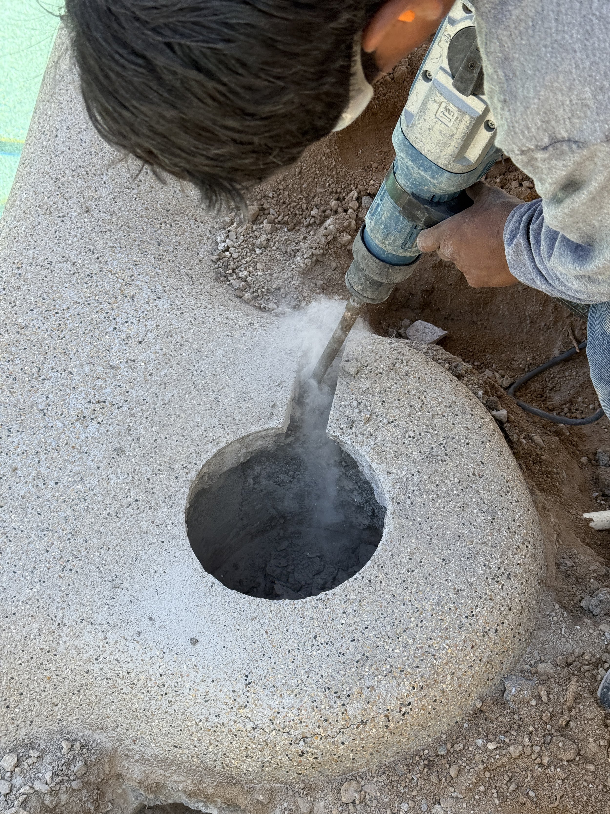 Removing old skimmers and AWLs requires cutting a square around them and demoing so we can expose the plumbing. We can then cut, remove, replumb and pour back. In this example we demoed out an old fashioned concrete AWL, which left room for a new CMP AWL.